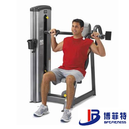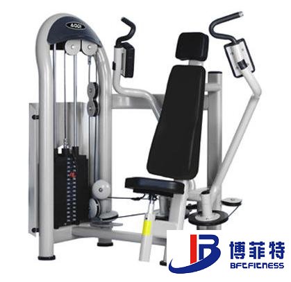 進行飛鳥夾胸時所使用的一種機械。主要鍛煉胸大肌和胸部中縫為主的胸部諸肌,初級使用者多會背部緊貼座椅,以便用力;較有經(jīng)驗的用者則會背部離椅,同時鍛煉腹部肌肉。