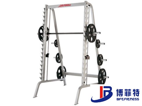 史密斯架是的杠鈴滑動軌跡受到限制,訓練者可以放心大膽地使用大重量,而且它不單單局限于深蹲的訓練,還可以做臥推 (上斜、平板、下斜)。俯姿劃船,肱二頭肌彎舉等。鍛煉胸大肌,股四頭肌,股二頭肌,背肌等。對初學者來說是很重要的一種安全器械。
