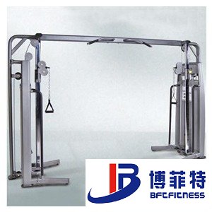 又是一個多功能器械。綜合訓練器,可訓練全身各部位肌肉,很多部件可以更換拆卸,而且這個器械很安全。